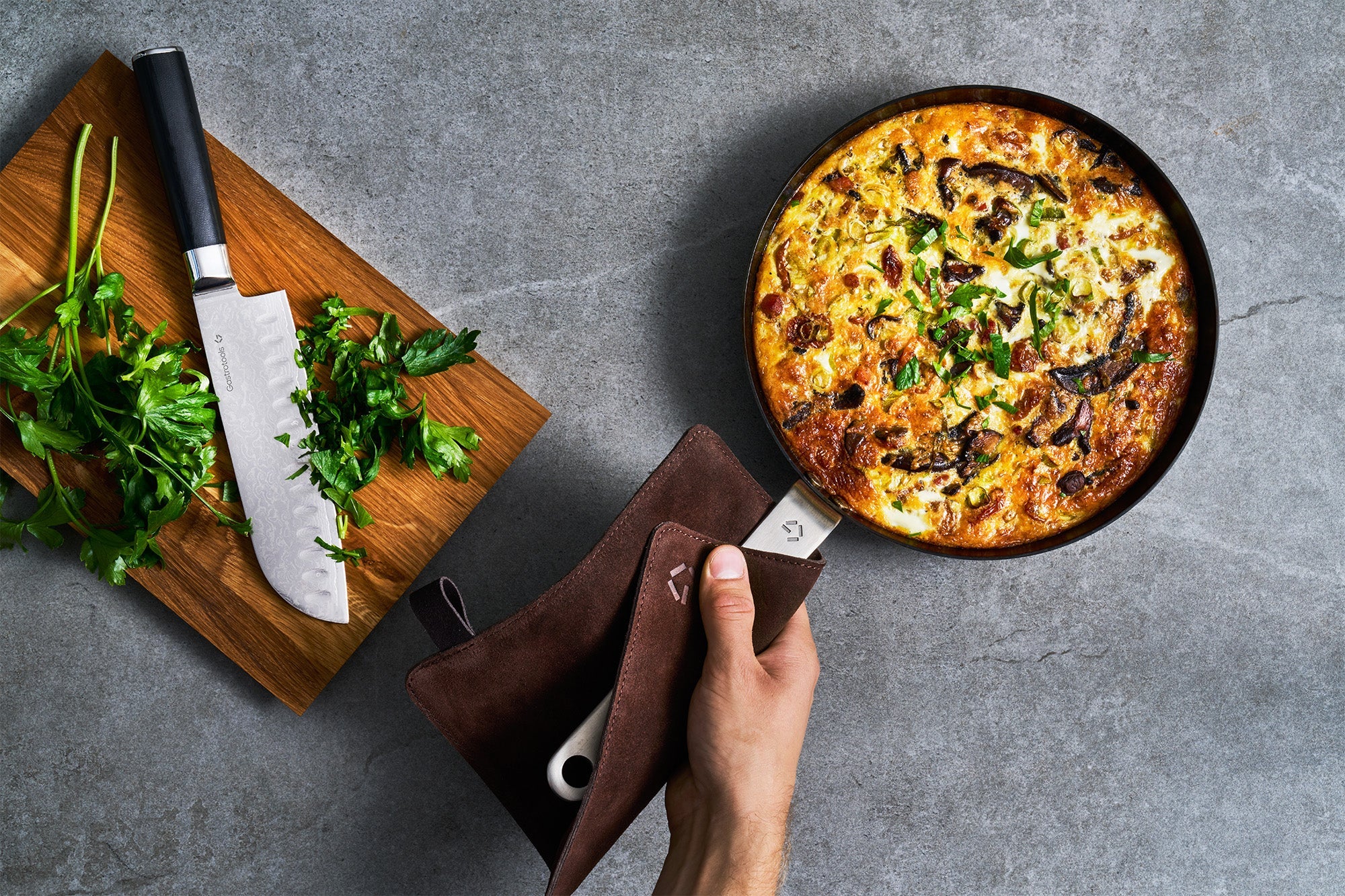 Our pans are handmade in Italy by our friends and partners Franco, Mario and Eliano, who carefully craft each product in their family workshop with over 130 years of expertise. It's Danish design, Italian craftsmanship and your guarantee of top-shelf quality.