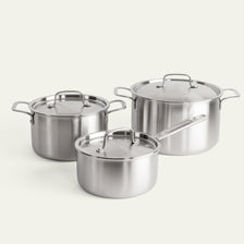 With 5-ply construction, you get an indestructible set that lasts a lifetime, along with all the benefits of stainless steel: low maintenance, suitable for all types of cooking, and completely free from PFAS and other harmful coatings that wear off over time and end up in your food.