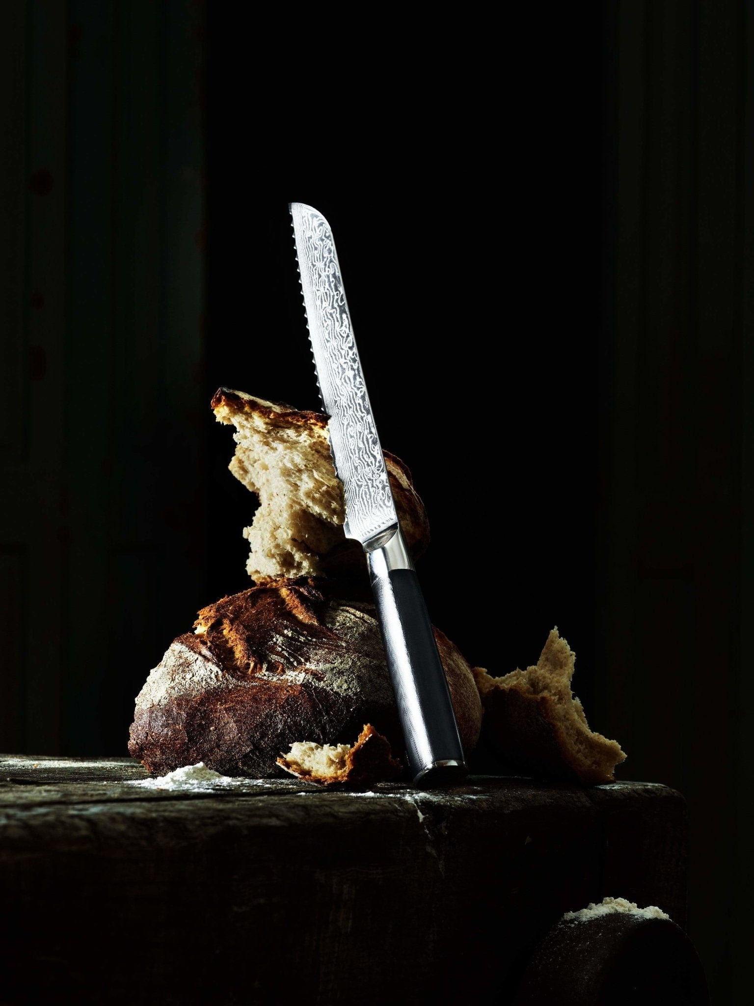 Our bread knife features a 21 cm blade, forged from 67 layers of steel with a VG10 steel core, delivering exceptional precision.
