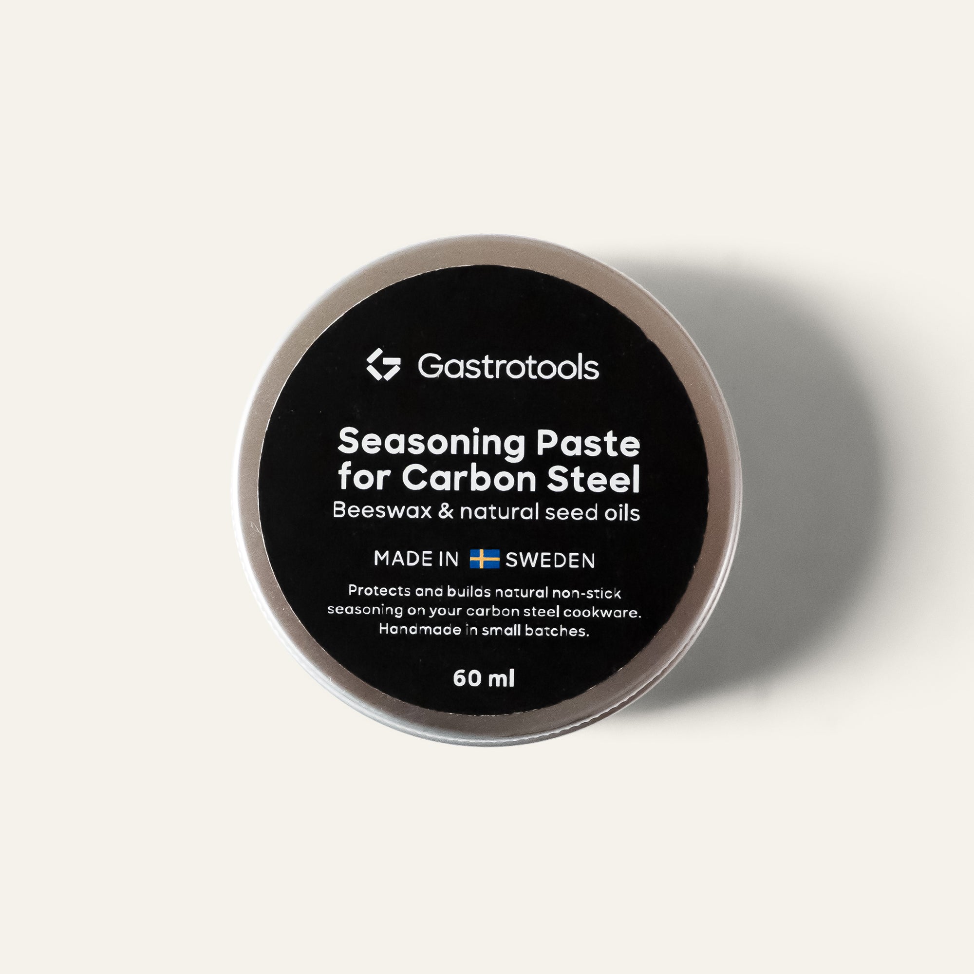 Carbon steel is a fantastic material in the kitchen, especially when you give it the right care. That's why we've made it easy for you and put together the essentials in one set. You get care wax, a steel scrubber and a linen cloth, so you have the tools you need for seasoning, cleaning and care.
