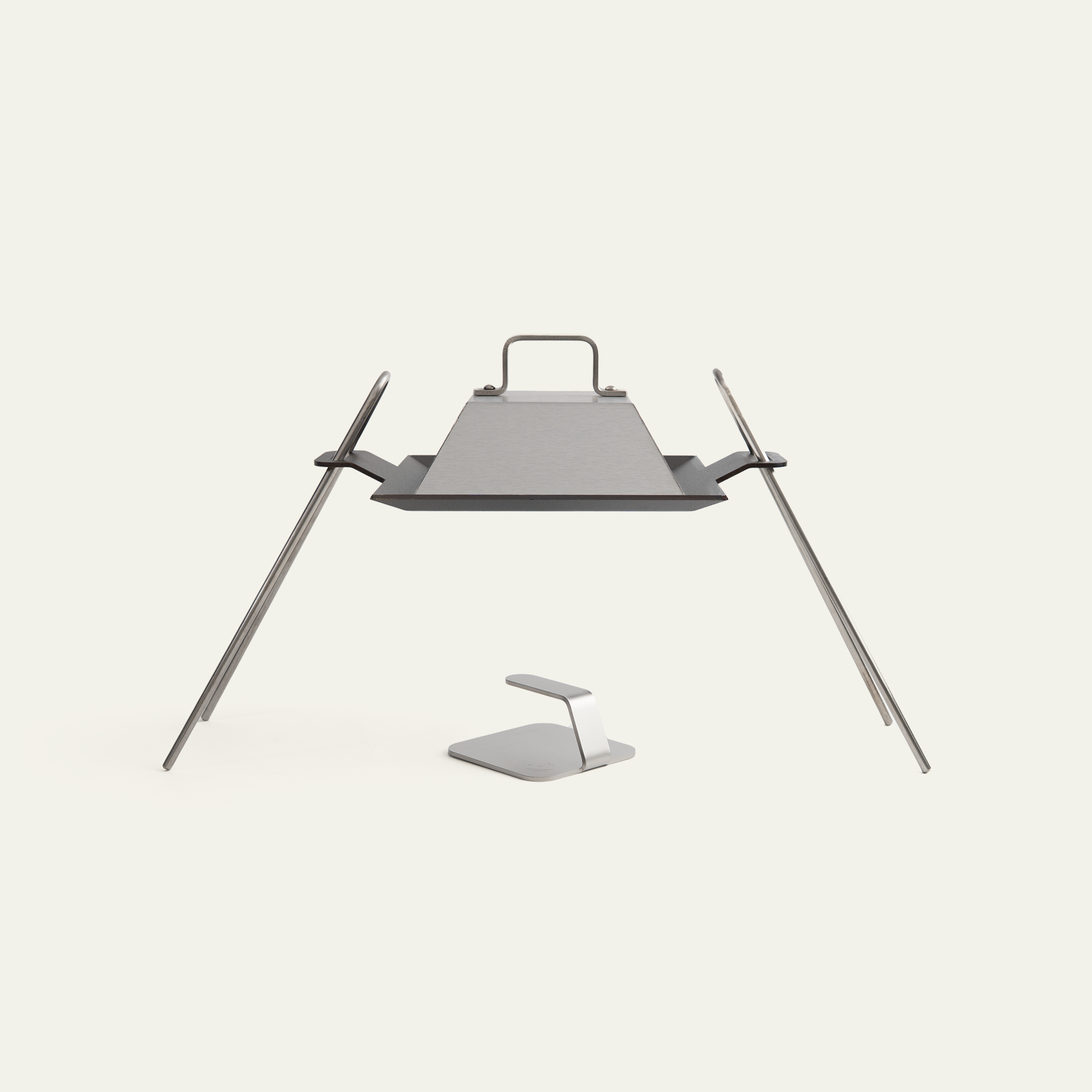 The griddle is inspired by professional kitchens and designed to last a lifetime of cooking adventures, both indoors and outdoors. Carbon steel is as durable as cast iron but weighs only half as much. This makes the griddle ideal for taking out into nature together with a fire stand, smasher and lid, so you can create culinary experiences at sunset, on the beach or in the forest.