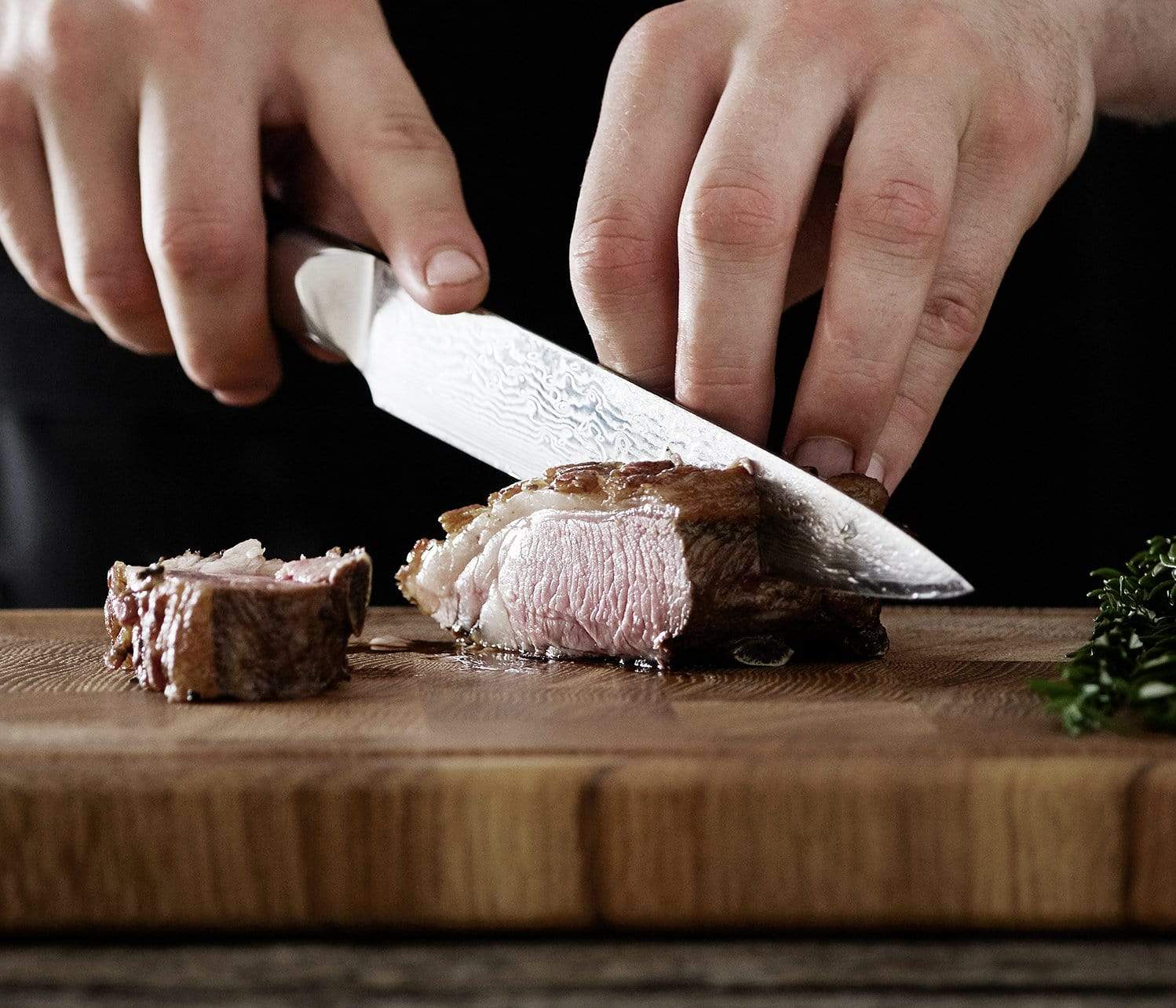 This carving knife features a blade made from 67 layers of steel with a core of VG10 steel – and it makes a noticeable difference. When you carve your roast with this as your tool, the meat will feel as soft as butter with every slice.