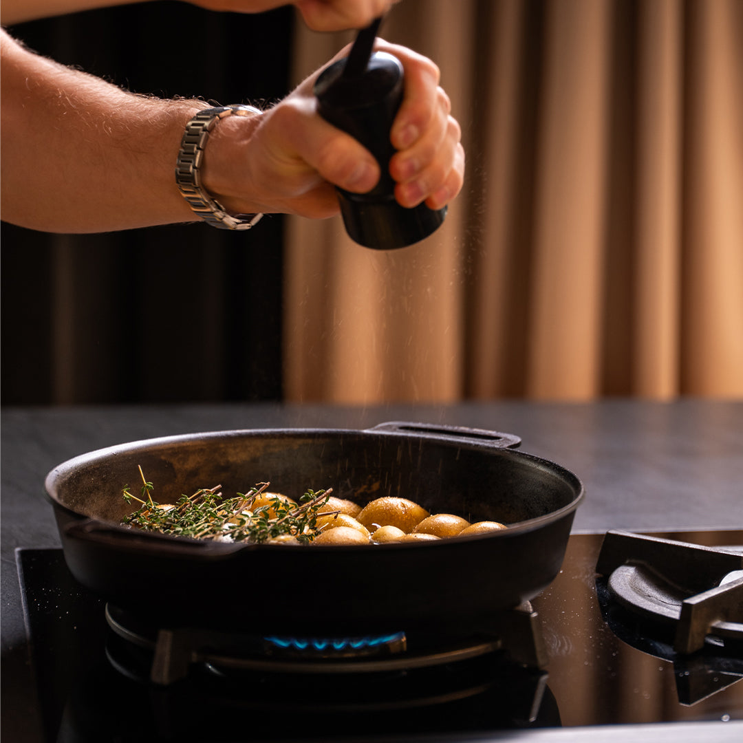 You get a natural nonstick effect completely free of PFAS because the frying pan is pre-fired with a carefully formulated blend of neutral oils. So you can start using it right away - and even experience how the pan gets better and better over time as you burn even more oil into the sandblasted surface while cooking. Experience a pan that is not only made to last a lifetime, but also to get better year after year.