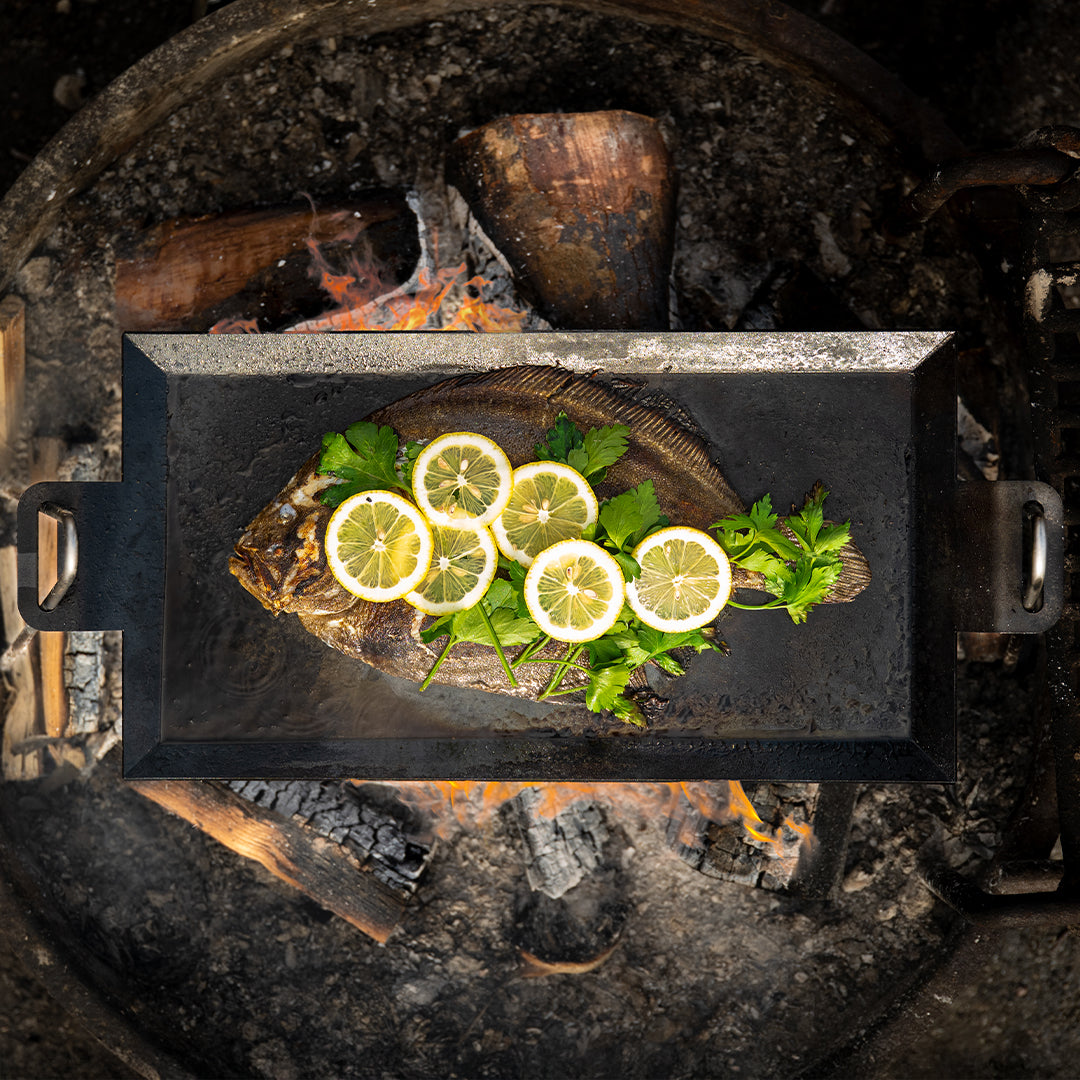 The griddle is inspired by professional kitchens and constructed for a lifetime of culinary adventures both indoors and outdoors. Carbon steel is as durable as cast iron but weighs only half as much, providing the griddle with incredible heat control and fantastic natural non-stick properties that only improve with time.