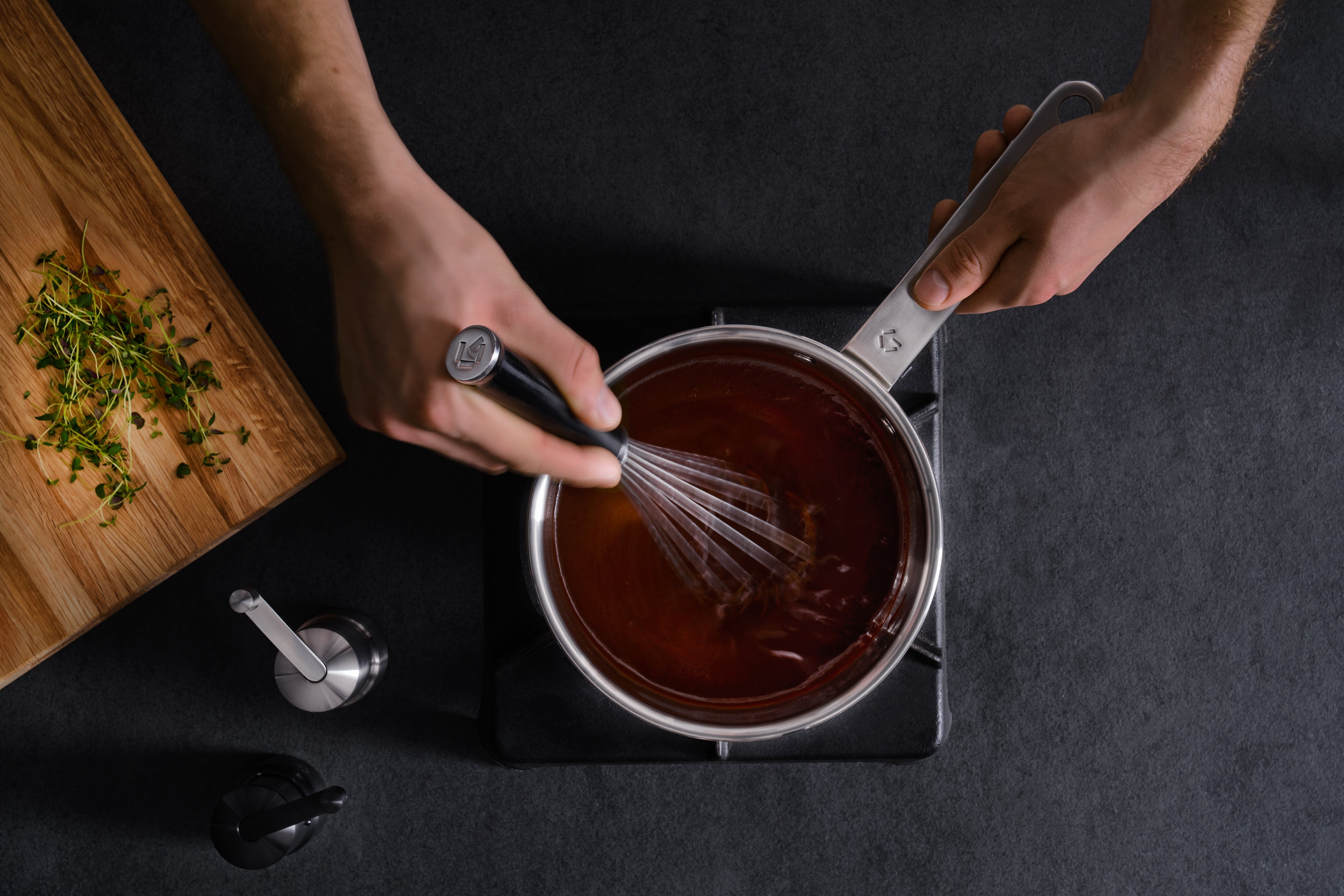 You’ll achieve precise heat control thanks to its aluminium core, which offers outstanding heat conduction, allowing you to quickly adjust the temperature. Unlike cookware with an attached sandwich base, the heat naturally spreads up the sides of the saucepan, as the entire pan is made of 5-ply construction – ideal for emulsifying creams and whisking sauces.