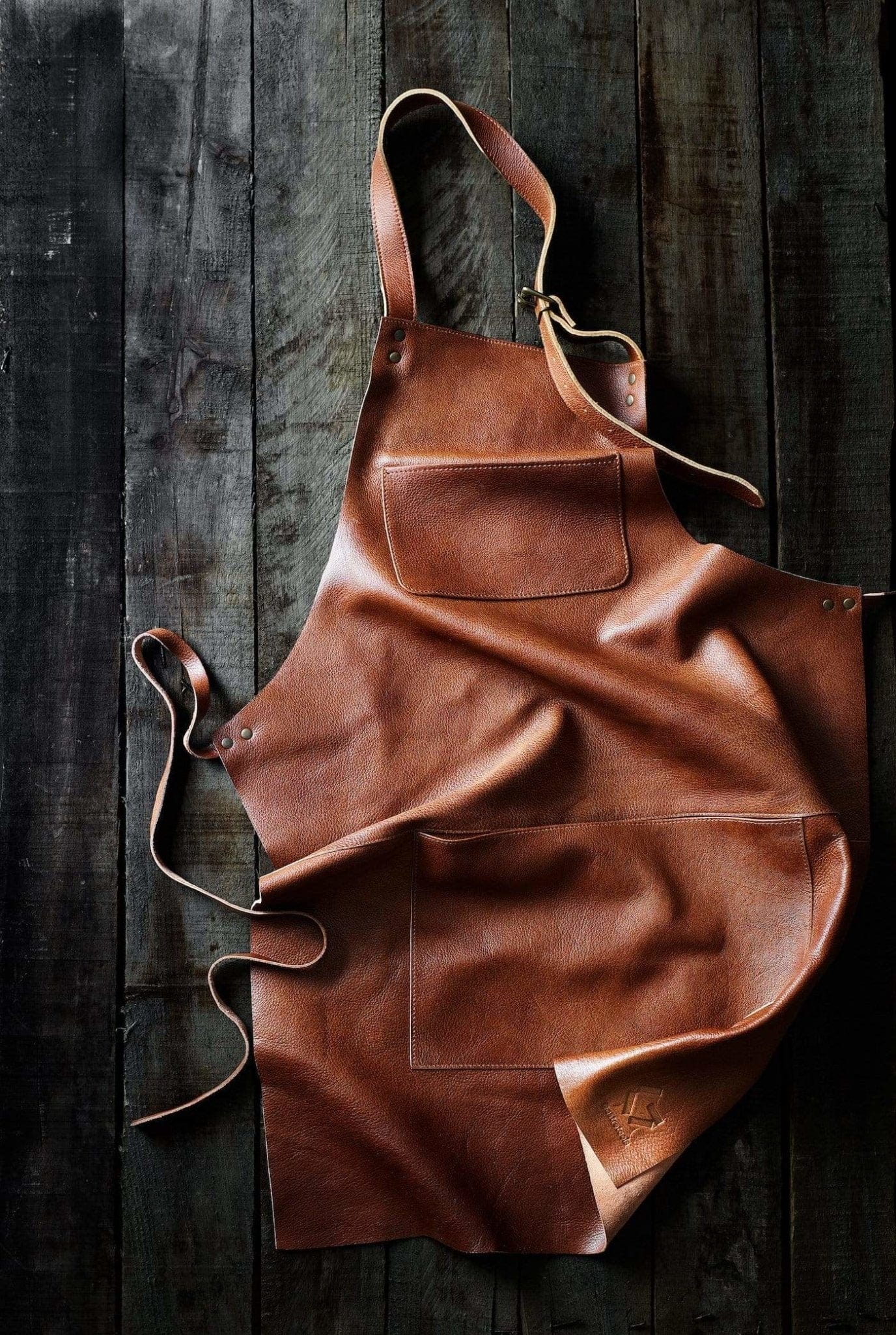 • Handcrafted leather apron in 100% full grain cow leather
