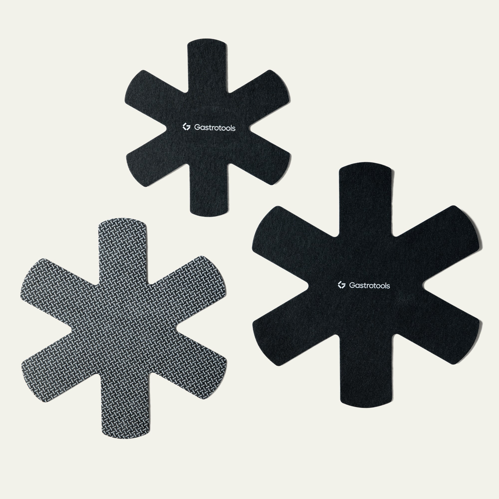 Pan protectors are the perfect accessory for your pans if you store them stacked together. The design is sleek and functional: thanks to the shape of the protectors, they sit at the base of your pans, allowing you to easily stack on top – and you can even use them in pots as well.