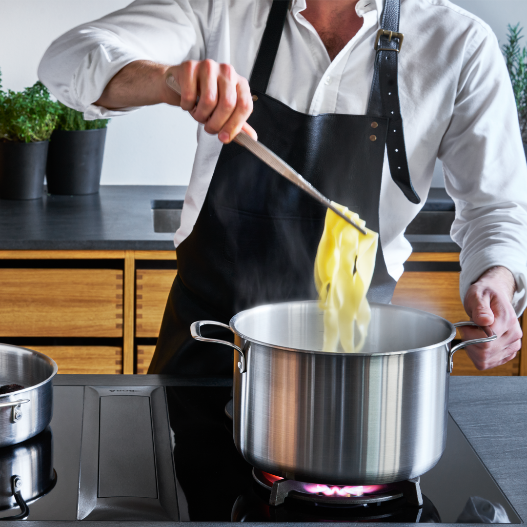 We asked Denmark’s top chefs what the ultimate series of pots and pans should look like, and here it is. Featuring professional details such as a pouring rim and materials used in the world’s finest restaurants. With its generous 7L capacity, this pot is indispensable in any kitchen – perfect for making homemade stock, crafting flavourful soups, or preparing hearty stews for the whole family.