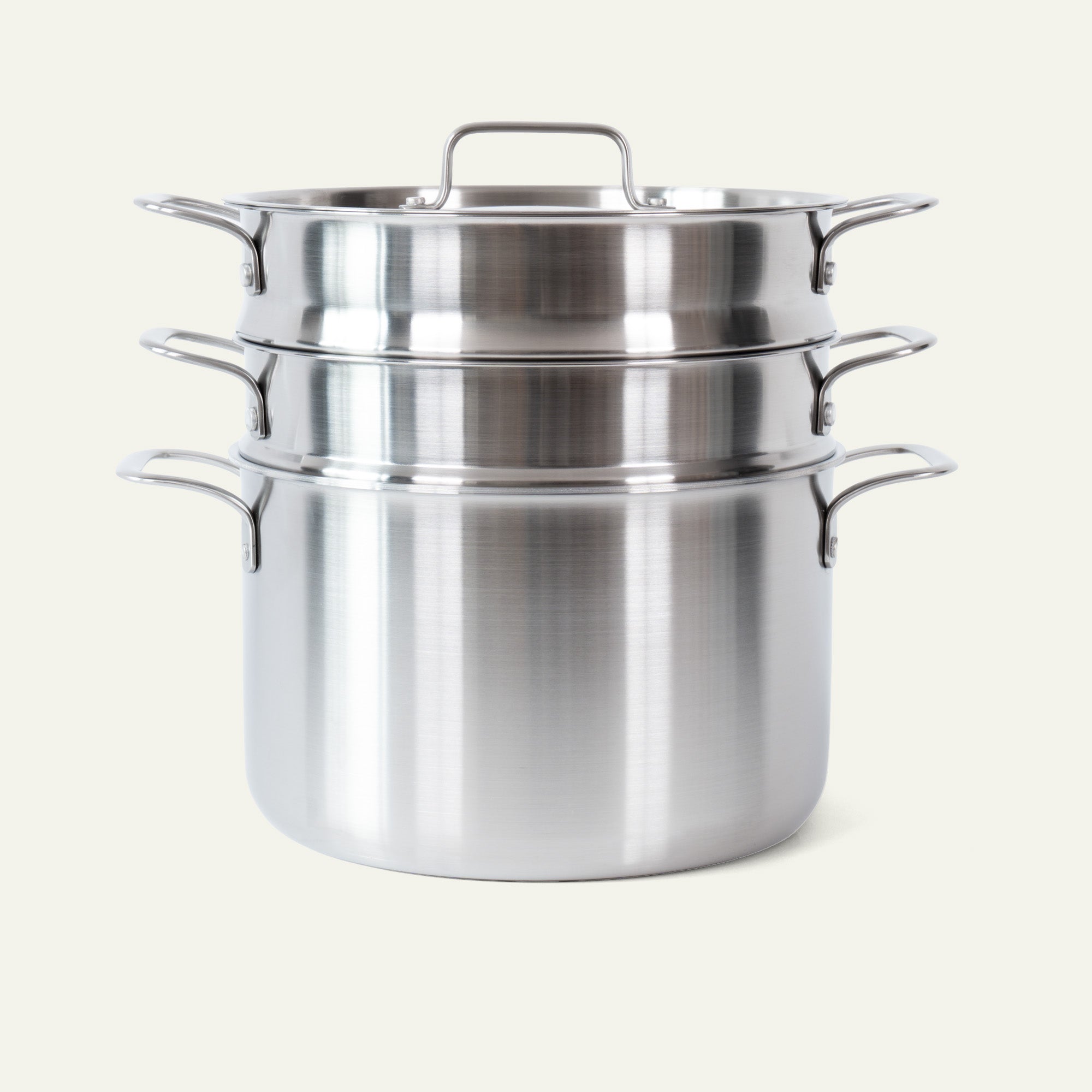 With 5-ply, you get a durable pot that will last a lifetime with all the benefits of stainless steel: low maintenance, suitable for all types of cooking, and no PFAS or other harmful coatings that wear off over time and end up in your food.