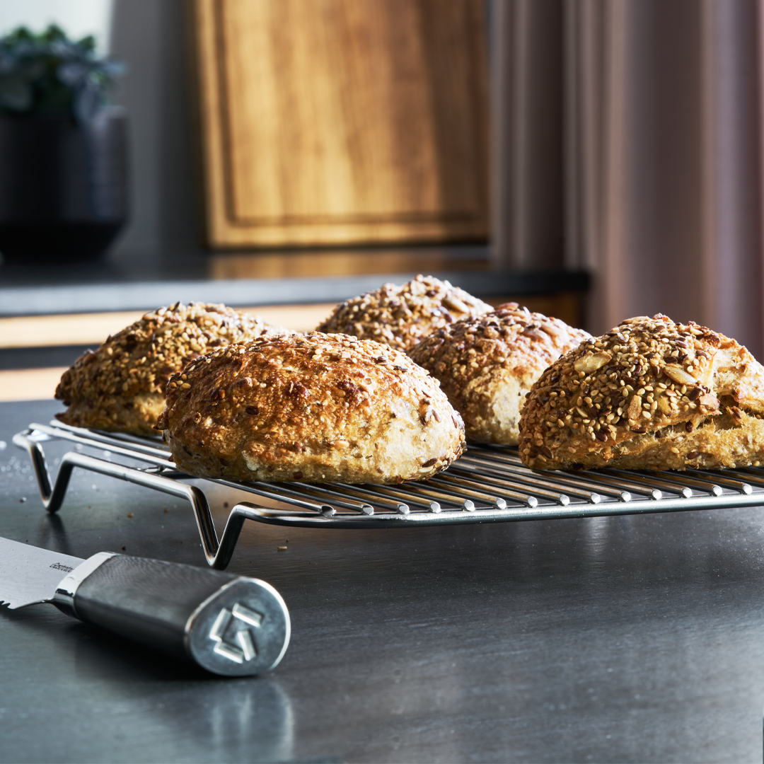 The rack is an incredibly versatile kitchen tool, so it’s not just an addition to your roasting pan. It’s also ideal for other tasks in the kitchen – for example, use it to rest your steaks or cool your bread without steam ruining your results.