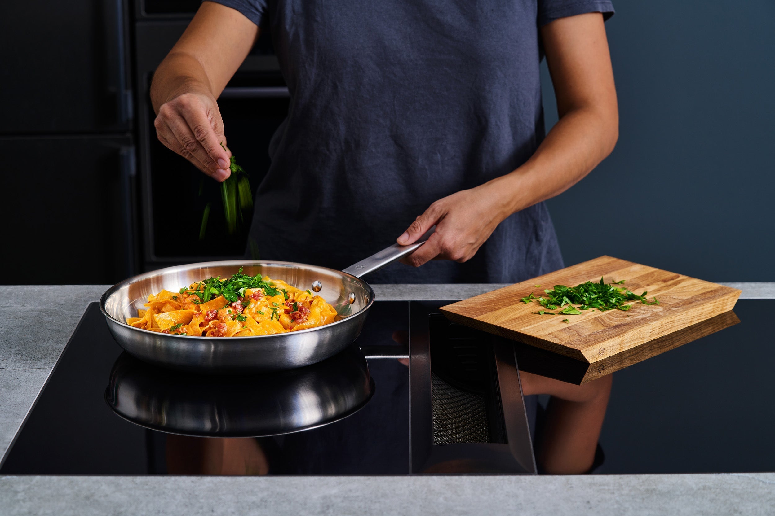 We asked Denmark's top chefs what the ultimate series of pots and pans should look like, and here it is. Featuring professional details such as a pouring rim, CoolGrip handle, and materials used in the world’s finest restaurants. The 28 cm frying pan is the pan in your kitchen that you'll use the most. The size is perfect for big steaks, pasta dishes or the pancakes for weekend brunch.