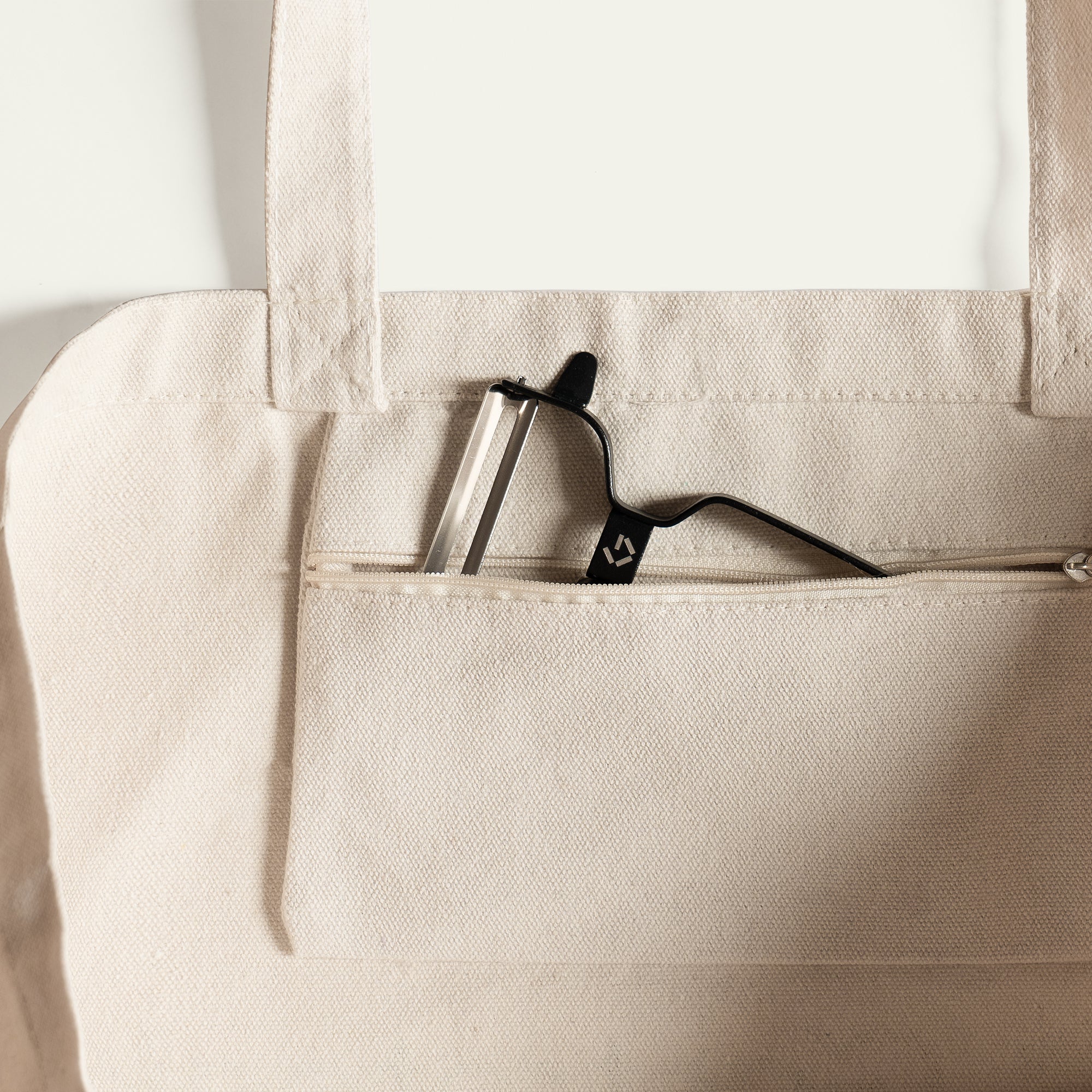 The wide design gives you a spacious tote bag that can hold a lot - but can also be folded up and stored in your shoulder bag or car, so it's always close at hand and can replace traditional plastic bags when you're out shopping. Inside you'll find a small zipped pocket to keep your keys, phone or credit cards close at hand and securely stored away.